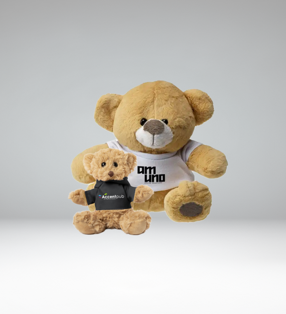 Accentpub vous propose une grande sélection de modèles de peluches publicitaires à habiller aux couleurs de votre entreprise.