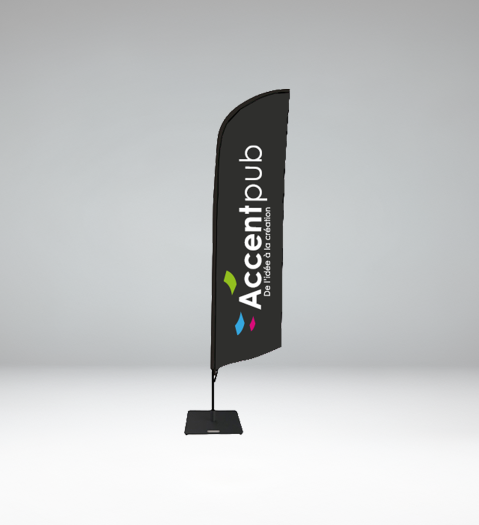 Accentpub vous propose différentes tailles de drapeaux ainsi que différents modèles. Nous réalisons vos drapeaux personnalisés à votre image, en imprimant la voile de vos visuels.
