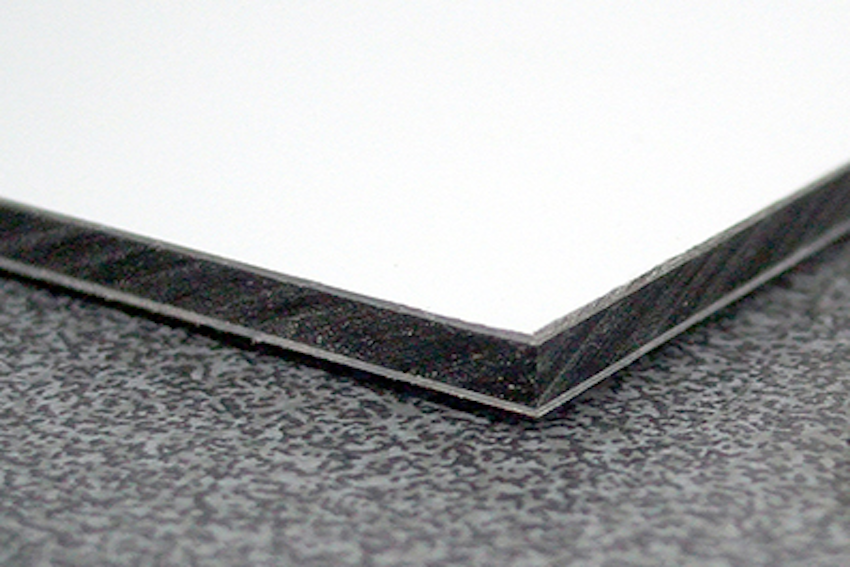 Le panneau alu Dibond se compose de trois plaques superposées : 2 plaques externes en aluminium et une plaque centrale en plastique rigide (polyéthylène).